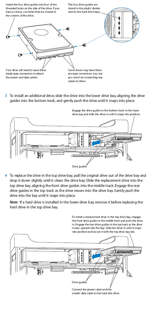 G5는 windflower님의 말씀처럼 S-ATA 방식의 하드디스크를 사용하며, 우측 상단의 베이에 슬라이딩 방식으로 장착을 하게 되어 있습니다.