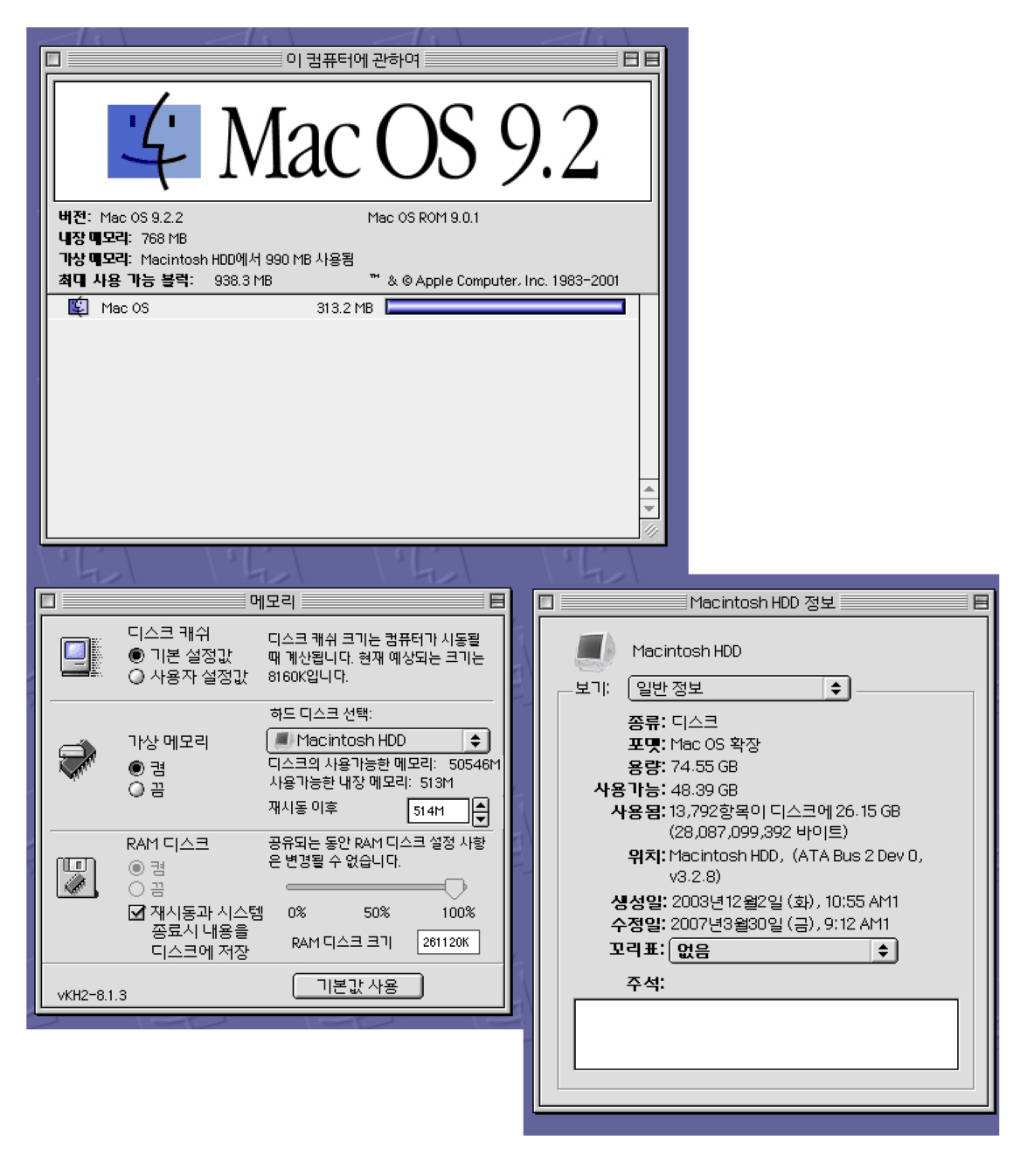 그래도 메모리가 768MB이상은 되는것이 좋습니다.