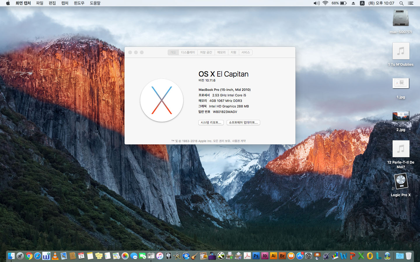 로직프로 깔린 맥북프로 15인치 2010년식 i5-2.53