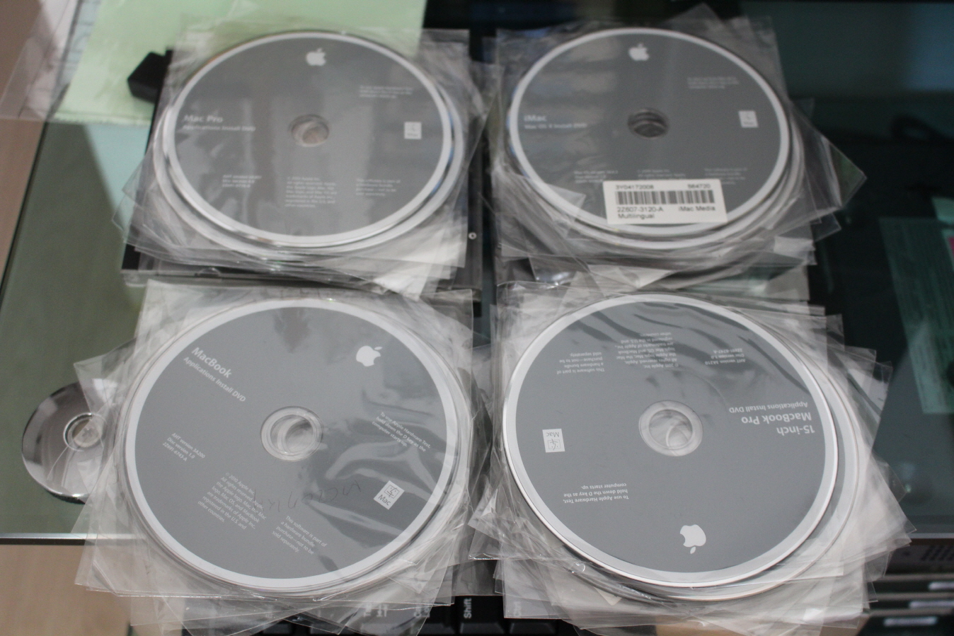 렌탈장비에서 나온 맥북, 맥북프로, 아이맥, 맥프로용 번들 복구 DVD 56장 입니다. 대부분이 10.6시리즈 버전이고 10.5시리즈 버전은 몇개 없습니다.