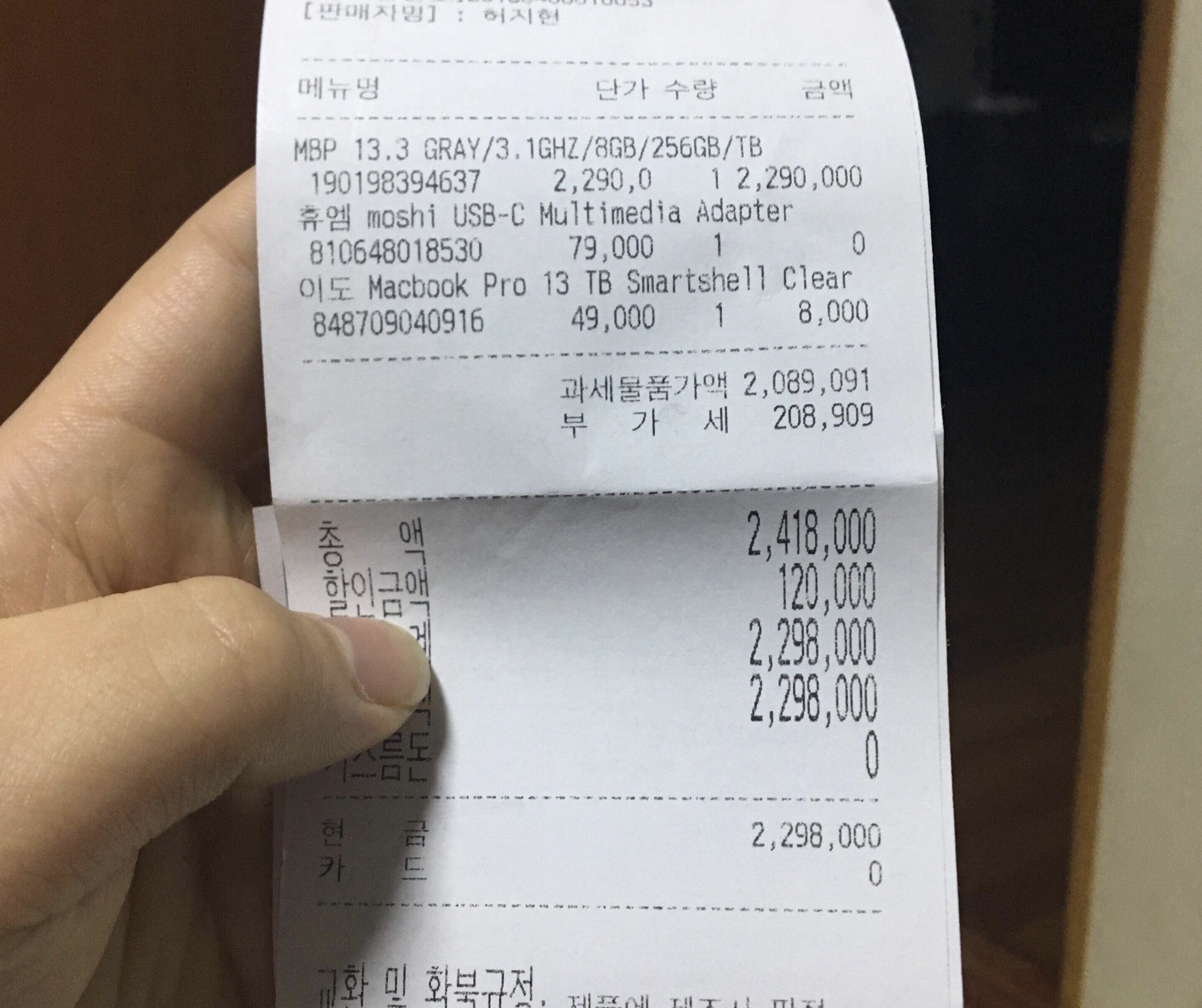 230 만원 주고 구매하였습니다. 영수증 위 게시했고,