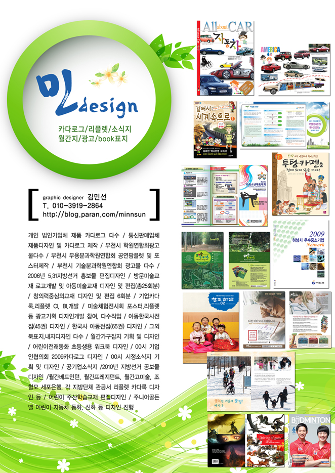 맥편집디자인 경력 15년이상 되었고 소식지 월간지 기업카다록 리플렛 어린이 동화책 단행본 표지 학습지등 디자인과 인쇄에관한 제작작업 모두 가능합니다. 영등포쪽에 작업실 있습니다.